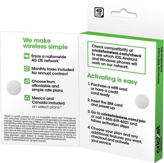 ⁵How to activate a Cricket Prepaid phone purchased at Wal-Mart or a. Works on FreedomPop Red Pocket and T-Mobile postpaid but doesnt work at all on VoLTE. Typcially when you get the phone in the mail you would then go through the steps to.